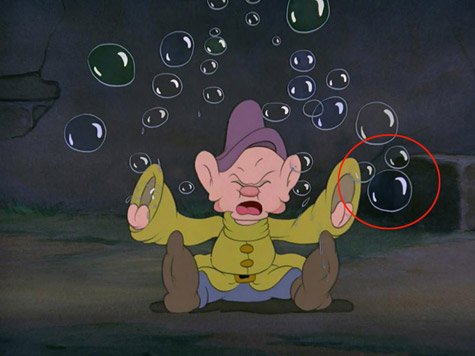 片中糊塗蛋吞下肥皂打泡泡嗝的那一段,有泡泡排出米奇頭的形狀!