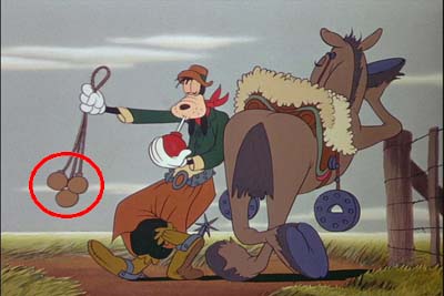 片中“高卓族的高飛”那段,高飛的獵具之一,是一組三個球狀的物品,在有幾幕當中,這三個圓看起來就像是排成米奇頭形狀的喔!