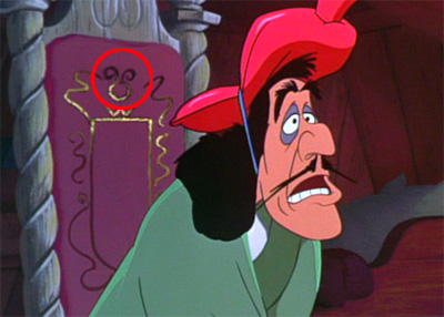 • 在本片中海盜船上虎克船長的座椅背墊,有一個米奇頭的花紋。
