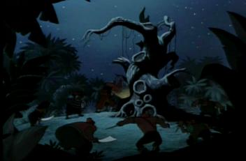 • 在本片中幻想島上失落孩子們的棲身樹洞入口下方,有三個入口大門是排成一大圓兩小圓的米奇頭形狀喔!