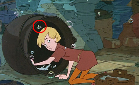 當梅林把小亞瑟變成魚的那幕,水中有好幾次泡泡是排成米奇頭形狀的。