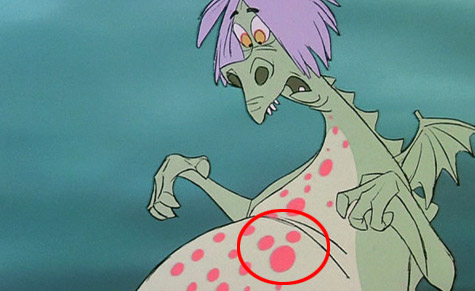 蠻夫人變成噴火龍發病身上的斑點,有個明顯的米奇頭。