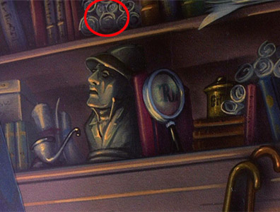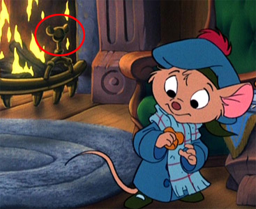 神探巴索住家的火爐旁邊,可以看到一老鼠頭形狀的金色雕飾,從某些角度看來,正好就是一個米奇頭。