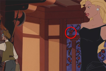 邁羅跟神秘女子海嘉來到韋摩老先生的豪宅,在室內入口處大門的上方圖案,有一個米奇頭!