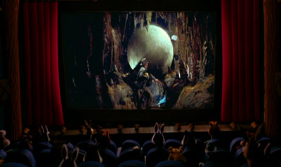 本片開場小雞丁闖禍的那一段,球型高塔倒塌在地面亂滾,甚至滾進電影院中,當時電影院正在播放的就是【法櫃奇兵】中印第安那瓊斯被古墓機關中巨球追逐的那一段,迪士尼樂園中的『印第安那瓊斯冒險』遊樂設施中也有類似的場景!