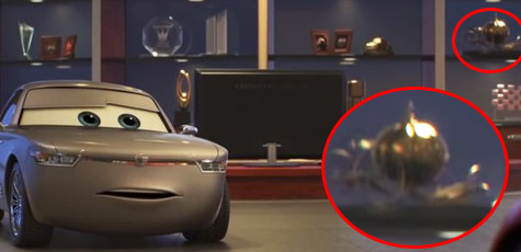 訓練總部的電視螢幕有出現下一部皮克斯電影【可可夜總會】的場景,這是某一位訓練車手的家鄉,訓練時看著老家的畫面給他激勵。