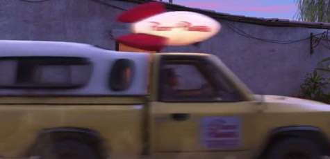 這次的Pizza星球送貨車出現超明顯,從米高家旁呼嘯而過。