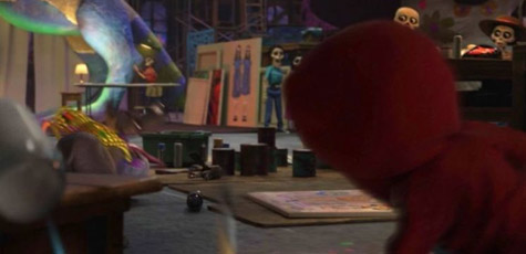 這次的皮克斯彈跳球出現在兩個地方,一個是某攤位賣的造型頭套;另一個則出現在丹丹遇到一隻引靈獸猴子的那一幕。