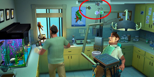 牙醫診所水族箱裡有一個沉船裝飾物,上面還有一隻美人魚,這美人魚是出自皮克斯的短片【小雪人大行動】(Knick Knack),該部短片是皮克斯第一次處理水中情景的作品,裡面出現了那隻美人魚。