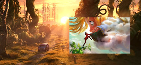 旅途中兩人行經一片巨大的魔豆森林,這很明顯是出自【傑克與魔豆】的故事,迪士尼過去曾經將這題材拍攝成經典動畫【米奇與魔豆】,本來也有計畫還要製作一部【傑克與魔豆】的動畫作品,可惜最後計畫被棄置了。(網友tony stark 提供)