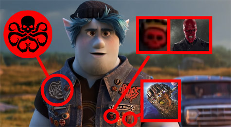 主角兄弟的配音員是在漫威宇宙裡面飾演「蜘蛛人」和「星爵」的湯姆霍蘭和克里斯普瑞特,而本片就出現了許多讓漫威迷會心一笑的元素。我們看到湯姆霍蘭配音的伊恩,身上的服裝配色就是蜘蛛人的紅色和藍色。(網友tony stark 提供)