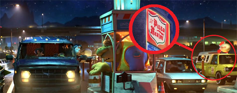 「披薩星球卡車」這個來自於【玩具總動員】系列的披薩外賣車,充斥在每部皮克斯電影當中。這次在【1/2 的魔法】也有出現在快速道路上,並且店名還因應這個世界觀改名為「披薩王國」(Pizza Realm)。(網友tony stark 提供)