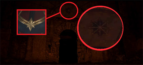 兄弟的冒險來到了最後一站,在地洞下的石門上方,有一個類似像「驚奇隊長」星芒標誌的圖樣。(網友tony stark 提供)