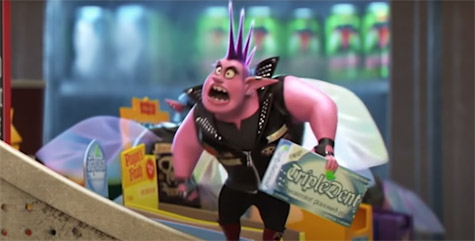 兩兄弟在冒險途中來到一間加油站,加油站裡就賣著【腦筋急轉彎】裡面那個洗腦廣告的口香糖 “Triple Dent Gum"。(網友tony stark 提供)