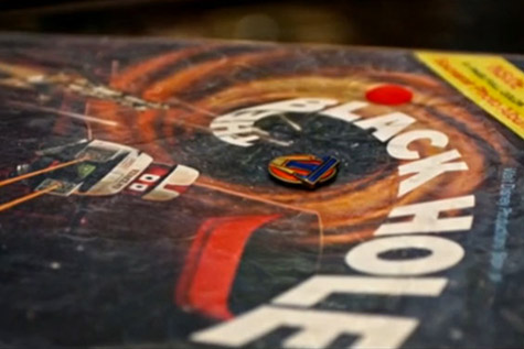 在玩具店當凱西首度拿出明日世界徽章的那一幕,桌上擺著的正是迪士尼經典科幻電影【黑洞】的相關刊物。