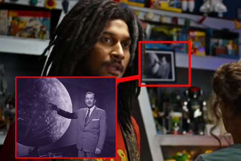 【明日世界】一片的靈感就是來自於迪士尼樂園的『明日世界』園區,所以片中明日世界有一棟建築物明顯看就知道是樂園裡的『太空山』遊樂設施外觀建築。