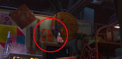 每部皮克斯電影都會出現的彩球,這回有出現在幾個地方,其中一個是在某一幕鳥瞰古董店的時候。