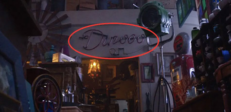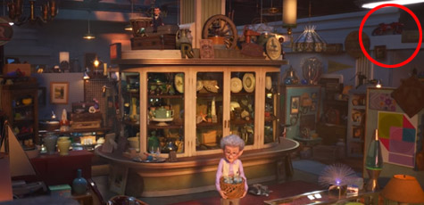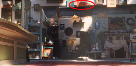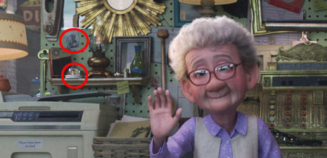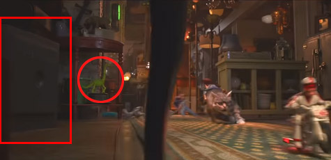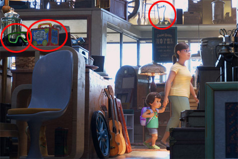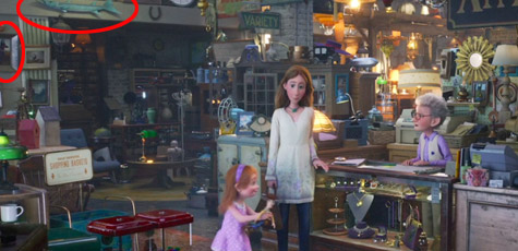 皮克斯動畫家承認在古董店裡,藏了所有皮克斯作品有關的東西,以下這幕出現【海底總動員】的梭魚,以及【天外奇機】狗老大發哥的肖像。