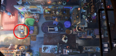 在與貓追逐的這段,出現了【恐龍當家】的阿羅、一台皮克斯早年曾推出的舊型電腦,還有【瓦力】裡三個主要角色的杯子。