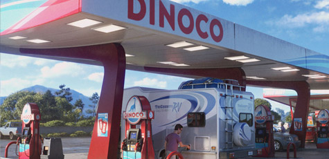 之前幾集就出現過的 DINOCO 石油公司又出現了,這也是【Cars】系列裡活塞盃賽車比賽的贊助商。在本片中出現在邦妮一家停靠的加油站,另外古董店牆上也有出現 DINOCO 的字樣。