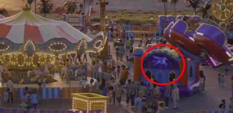 每部皮克斯作品都會放入下一部作品的東西,在本片遊樂場某個攤位就可以看到下一部皮克斯作品【1/2的魔法】中主角兄弟所開的車身一模一樣的飛馬圖案。