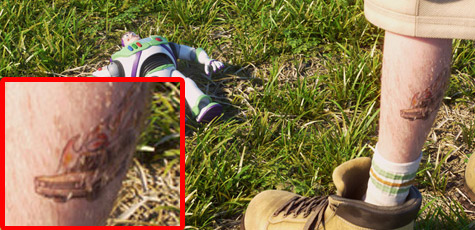 每部皮克斯作品都會出現的比薩星球送貨車,這回居然是出現在攤位工作人員腿上的刺青圖案上。