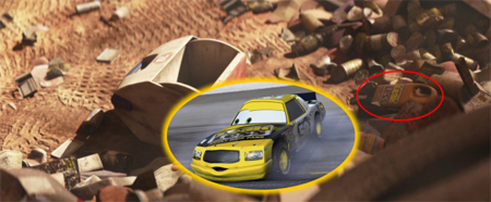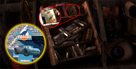【瓦力】中 的廢物堆裡,有個物品上面有【汽車總動員】裡某輛賽車的標誌『Leakless』。