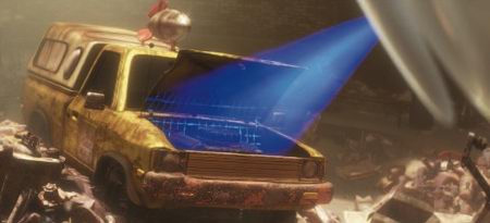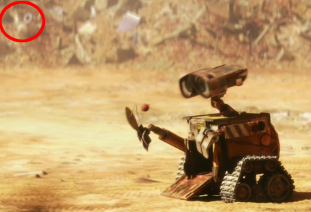 幾乎每部皮克斯動畫片中都會出現比薩星球送貨車 ,在【瓦力】當中變成一量廢棄車,這一幕出現在 EVE 來到地球四處探測生命跡象的時候。