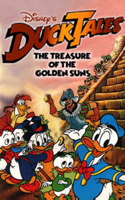 【唐老鴨俱樂部:尋金記】 DuckTales: 迪士尼電視動畫部門所製作的【唐老鴨俱樂部】(DuckTales)動畫影集是在1987年推出,當時頗受歡迎,後續推出了四季共一百集之多,還有一部上映電影。而最早打頭陣推出的連續內容是一個長篇作品【唐老鴨俱樂部:尋金記】(DuckTales: The Treasure of the Golden Suns),後來也拆成五集在原影集時段播出過。 【唐老鴨俱樂部:尋金記】是整部影集的開端,故事敘述唐老鴨要去海軍服役,因此將他的三位外甥 Hewey 、Dewey 和 Louie 帶去給他的叔叔 Scrooge McDuck 照顧,超級富有的 Scrooge 不情願地接下照顧孩子的責任,但約法三章要三小鴨乖乖待在他的豪宅裡,不可以隨便亂闖或亂碰他的東西,但沒想到盜賊集團 Beagle Boys 居然在野心家 El Capitán 的幫助下越獄並且闖入 Scrooge 的金庫要偷東西,當小鴨們發現原來他們的目標是 Scrooge 收藏的一艘模型船,進而發現船裡原來有藏著一張藏寶圖,於是他和小鴨們展開一場尋金大冒險。本長篇故事後來也拆成五集內容,分別是『Don't Give Up the Ship』、『Wronguay in Ronguay』、『Three Ducks of the Condor』、『Cold Duck』和『Too Much of a Gold Thing』。 本片由 Alan Zaslove 、Steve Clark 、Terence Harrsion 執導,由 Jymn Magon 、Bruce Takington 、Mark Zaslove 編劇,配音演員方面,由 Alan Young 幫 Scrooge McDuck 配音,由 Russi Taylor 一人同時幫三小鴨和 Webby 配音,由 Jim Cummings 幫 El Capitán 配音,由 Tony Anselmo 幫 Donald Duck 配音,其他配音的還包括 Chuck McCann 、Terence McGovern 、Joan Gerber 、Peter Cullen …等等。本片的配樂則由 Ron Jones 負責,主題曲由 Mark Muller 作詞作曲。 【唐老鴨俱樂部:尋金記】在台灣並沒有發行影音產品,但包括本片的所有【唐老鴨俱樂部】動畫影集內容都有在台灣迪士尼頻道播出過。 |