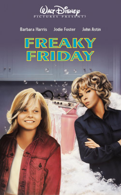 【怪誕星期五】 Freaky Friday 【怪誕星期五】(Freaky Friday) 是迪士尼1976年推出的電影,故事則是根據 Mary Rodgers 的小說所改編,她同時也是本片的編劇。本片後來迪士尼又在2003年老片重拍成英文同名電影【辣媽辣妹】。 如果發生怪事的話,沒有比發生在十三號星期五這一天要更適合了…【怪誕星期五】的故事就是發生在一個詭異的星期五早晨,Andrews 母女倆體驗了一段不可思議的奇幻經歷。在當天早晨媽媽 Ellen 和女兒 Annabel 又在鬧意見了,她們互相認為對方生活表現不合己意,認為各自的情況如果讓自己來應付簡直是輕而易舉,最後甚至鬥嘴說如果可以的話,希望能變成對方,過著更簡單輕鬆的生活。沒想到…她們倆人的「願望」居然突然間實現了!媽媽變成女兒、女兒變成媽媽,在這個怪誕星期五的一天當中,她們必須以這身分應付各自原本認為簡單輕鬆的日常生活… 這部電影是由 Gary Nelson 所執導,除了本片之外,他還執導過迪士尼70年代著名的科幻電影【黑洞】。領銜主演本片中那一對母女的是 Barbara Harris 以及 Jodie Foster ,當年 Jodie Foster 就是迪士尼捧紅的童星之一,她還演過的迪士尼作品還包括【山中惡徒】、【獅子與小孩】、【印地安小子】以及【夢幻古堡】。在本片中飾演媽媽 Ellen 的 Barbara Harris 以及飾演女兒 Annabel 的 Jodie Foster ,兩人演技表現都受到肯定,因此兩人同時入圍該年金球獎音樂喜劇類最佳女演員同台競逐,蠻有意思的。演出本片的其他演員還包括有 John Astin 、 Patsy Kelly 、Kaye Ballard …等等。至於幫本片配樂的則是 Johnny Mandel ,而由 Joel Hirschhorn 為本片譜寫的歌曲“I'd Like to Be You for a Day”則也獲得金球獎最佳歌曲的提名。 【怪誕星期五】在台灣並沒有發行過任何影音產品上市,但本片已經曾於台灣迪士尼頻道上播出過,本片還曾看過有【手忙腳亂】、【瘋狂星期五】等其他中文譯名。 |