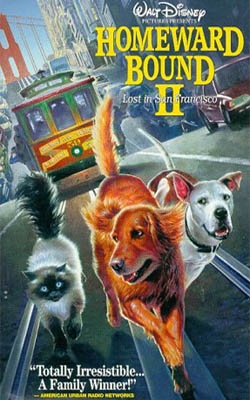 【看狗在說話之舊金山歷險記】 Homeward Bound II: 迪士尼繼1993年的【看狗在說話】(Homeward Bound)大受歡迎後,後來在1996年再度推出續集-【看狗在說話之舊金山歷險記】(Homeward Bound II: Lost in San Francisco)。 第二集接續第一集的風格,故事敘述幻影、狗運、莎莎三隻動物們這回又有狀況了,原本主人一家人是要帶他們到加拿大旅遊,但到了機場的時候,狗運一看到機場檢疫隔離的狗籠,誤以為主人要把他們送去收容中心不要他們了,慌張之下匆忙逃跑,幻影和莎莎也尾隨而去,於是他們就這樣開始在舊金山街頭的大歷險!在大城市街頭有隨時有各種狀況會發生,他們不但要躲避捕狗人的追捕,還要應付地痞流氓狗的威脅,當然他們也認識許多新朋友,狗運甚至還遇上了心儀的對象!經過一連串的冒險,他們最後終於還是平安回到主人的身邊。 本片是由 David R. Ellis 執導,擔任配音的演員方面,狗運仍然是由 Michael J. Fox 擔任,莎沙也還是由 Sally Field 擔任,但是在第一集中幫幻影配音的老牌演員 Don Ameche 已經在1993年逝世,故幻影改成由 Ralph Waite 擔任。本片的配樂仍然是由 Bruce Broughton 負責,他依然使用了第一集的主旋律貫穿本片的配樂,並新加入許多令人驚喜的變化,本片原聲帶是由迪士尼唱片發行的,但台灣並未出版。 【看狗在說話之舊金山歷險記】在台灣曾經出過VCD,並且也有出租的錄影帶,本片也已經在台灣的電視頻道播出過。 |