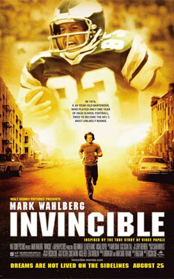 【所向披靡】 Invincible 【所向披靡】(Invincible)是迪士尼出品的一部運動勵志片,於2006年秋季在美國戲院推出上映。迪士尼同年間推出許多由真人真事改編的電影,例如【果嶺奇蹟】、【勇闖禁區】、【極地長征】…等等,而【所向披靡】同樣也是一部由真實故事改編的勵志電影。 【所向披靡】故事發生於1976年的美國, Philadelphia Eagles 美式足球隊的教練 Dick Vermeil 為了給球隊帶來一點新刺激,決定舉辦一次公開招募新球員的活動,邀請球隊的支持者參與。剛失去妻子的酒保 Vince Papale 決定參加這次招募活動,只有一年在高校參與美式足球活動經驗的他,竟然獲得球隊的取錄,從此展開運動員的生涯!由於 Vince 已經年屆30歲,所以在加入球隊初期,受盡其他人的白眼,憑著他的實力及永不放棄的精神,最終他的表現獲得觀眾的肯定及喝采聲。 本片由首次擔任電影導演工作的 Ericson Core 執導,製片曾參與【冰上奇蹟】及【心靈投手】兩部迪士尼影片的製作。演員方面,主角 Vince Papale 由在【決戰猩球】中擔任主角的 Mark Wahlberg 所飾演,而球隊教練 Dick Vermeil 由 Greg Kinnear 演出,其他演員還包括 Franklin Ojeda Smith 、Peter Defeo 、Rod Britton 、Michael Rispoli 、Michael Kelly …等等。本片的配樂則由 Mark Isham 負責,他亦擔任過【冰上奇蹟】、【極地長征】等迪士尼電影的配樂工作。 【所向披靡】已在台灣 Disney+ 平台上線推出。(文/Anthony)
