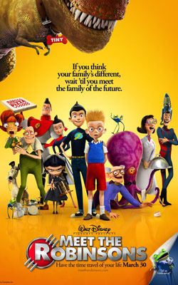 【未來小子】 Meet the Robinsons 【未來小子】(Meet the Robinsons)是迪士尼2007年春季推出上映的動畫電影,這是迪士尼動畫片廠所推出的第47部動畫電影,是一部完全使用3D動畫技術製作的作品。 【未來小子】的故事改編自 William Joyce 1990年膾炙人口的奇想繪本佳作《A Day with Wilbur Robinson》,故事主角是一位十分聰明的12歲少年 Lewis , 當初還在強褓中就被母親遺棄在孤兒院門口,他發明了一台能夠讓人回憶起過去的「記憶掃描機」,期待能夠在科學展覽比賽當中大放異彩,並且幫助自己找到母親。不料新發明卻被一個穿黑衣、戴黑帽的神秘傢伙偷走,於是 Lewis 跟著一位來自未來的少年 Wilbur 穿梭時空,展開一段精采的時空旅行冒險。面對黑帽怪客接踵而來的威脅,美好的未來世界搖搖欲墜,他們這兩位少年要如何拯救未來呢?。 本片由 Steve J. Anderson 執導,劇本則是由 Michelle Bochner 完成。兩位主角少年中的 Wilbur Robinson 由 Wesley Singerman 擔任 配音,另一位少年 Lewis 則由 Daniel Hansen 擔任,其他的配音演員還包括 Angela Bassett 、Kelly Ripa 、Tom Selleck 、Harland Williams 、Adam West 、Tom Kenny 、Ethan Sandler…等等。至於本片的配樂則是由 Danny Elfman 負責。 【未來小子】於2007年4月21日在台灣上映,同時有推出數位3D版本,這也是第一部在台灣推出的數位3D電影 ,影音產品也已經在台灣堆出了。本片電影原聲帶由EMI在台發行,除了CD之外,台版還多收錄一張AVCD,裡面包含預告及歌曲MV影片。 |
