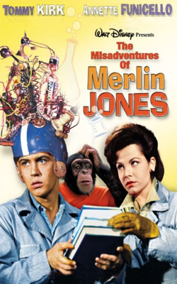 【阿達超人】 The Misadventures of Merlin Jones 【阿達超人】(The Misadventures of Merlin Jones)是迪士尼1964年所推出的電影,本片是繼【 天才教授】系列之後又一部題材為校園發明路線的喜劇,推出後表現不差,因此在一年後1965年迪士尼又推出了本片的續集【猴子叔叔】(The Monkey's Uncle)。 【阿達超人】片中的主角 Merlin Jones 是一位頗有發明天份的青年,只不過他除了科學頭腦外,平常給人的感覺總是有點古怪,跟學校裡一般人就是不同,然而還好他有一位能夠充分了解他的女友 Jennifer ,總是伴隨他身旁替他打氣。這位青年發明了一台讀心機器,它能夠依據事實假設來獲知他人的想法,但是當 Merlin 某天在進行實驗的時候,卻帶給他一連串的紛紛擾擾,因為他發現了一些他不應該發現的事情,被捲入一件十分糟糕的夜盜與謀殺事件,從此他災難臨頭,在別人眼中一像是個怪胎的 Merlin 如今必須證明自己的清白,擺脫這一切莫名其妙的災禍。 本片是由執導過許多部迪士尼名片的大導演 Robert Stevenson 所執導,在本片中飾演那位怪胎青年 Merlin Jones 的是 Tommy Kirk ,他從童星時期就是迪士尼電影中的常客,曾經領銜主演過【老黃狗】、【海角一樂園】、【天才教授】…等多部迪士尼的經典名片。擔任本片女主角 Jennifer 的則是迪士尼當年所力捧的影歌雙棲女星 Annette Funicello ,本片中的其他演員還包括有 Leon Ames 、Stuart Erwin 、Connie Gilchrist …等等。擔任本片配樂的則是 Buddy Baker ,主題曲“Merlin Jones”則由 Richard M. Sherman 以及 Robert B. Sherman 兄弟所創作。 【阿達超人】在台灣並未發行過任何影音產品,但本片已曾經安排在台灣的迪士尼頻道上播出過。 |