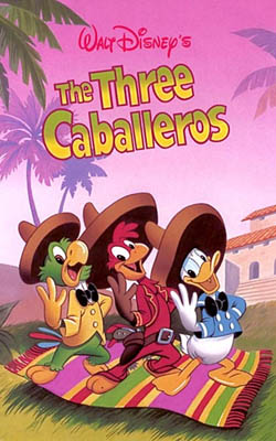 【三騎士】 The Three Caballeros 【三騎士】(The Three Caballeros)是迪士尼於1945推出的動畫電影,是迪士尼第7部經典動畫,是部有點紀錄片性質的作品。 【三騎士】是繼1943年的動畫紀錄片【致候吾友】之後,華特迪士尼再度拍了一部介紹中南美洲的動畫片。本片仍然是以唐老鴨為主角,敘述他在生日時收到由拉丁美洲寄來的禮物,然後再次享受了一趟快樂旅程。本片共包括三個段落,前兩段落是兩個拉丁民族流傳的故事,第三部分就純粹是一趟旅遊記趣,也是本片最長的一段落,唐老鴨跟好朋友一同遊遍巴西和墨西哥,許多場景還是真人和動畫同時演出的。而所謂的【三騎士】分別是指唐老鴨以及來自巴西的鸚鵡 Jose Carioca,他與唐老鴨是在【致候吾友】片中就已經認識;還有一位則是來自墨西哥的公雞 Panchito。 其中唐老鴨與巴西的 Jose Carioca 在後來1948年的動畫電影【旋律時光】中再度一同出現,還一同跳了一段森巴舞。 本片是由 Norman Ferguson 所執導,音樂由 Charles Wolcott 、 Edward Plumb 、 Paul J. Smith 配樂,作曲、作詞則分別由多人負責。其中包括知名拉丁音樂作曲家 Ary Barroso 的世界名曲“Baía”和“Os Quindins De Yayá”。本片並且還 獲得當年奧斯卡最佳音樂片配樂、最佳錄音兩項提名。 【三騎士】在台灣並未發行任何原版的影音產品,但已經在台灣迪士尼頻道播出,並在Disney+上推出,然而中文片名卻是譯作【唐老鴨墨西哥奇遇】。 |