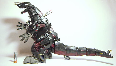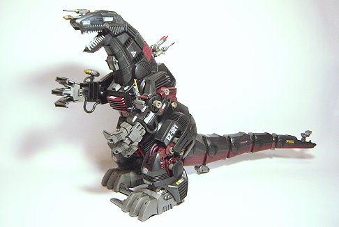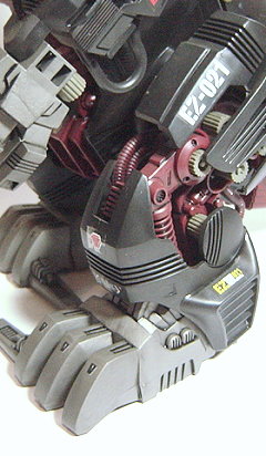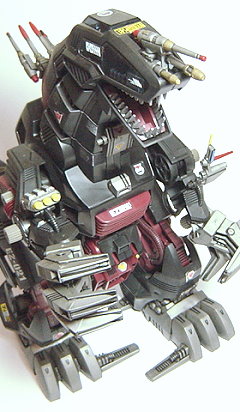 在中央大陸戰爭時所留下的紀錄與傳說中 找出了當時僅以一架之姿就擊毀共和國軍大部份的部隊和基地的秘密 利用背上裝置吸入空氣中的靜電後於體內將能源轉換 並且放大能量後經由口中將粒子電子光砲發射出來 另外在格鬥戰中雙手的電磁指甲也裝備了加重力衝擊器 運用壓倒性的力量輕易地撕裂機械獸