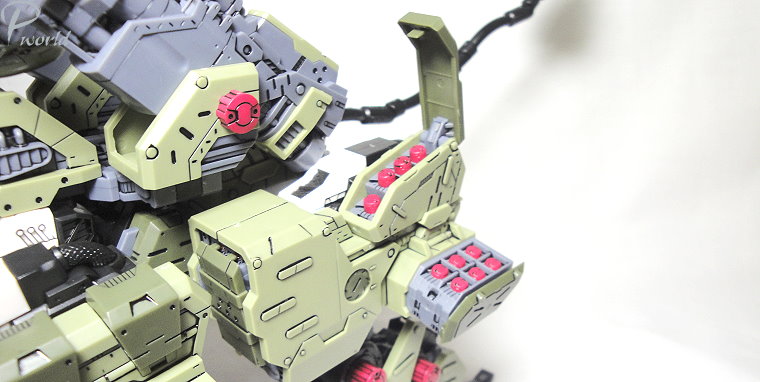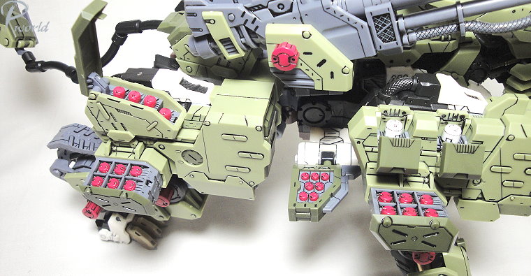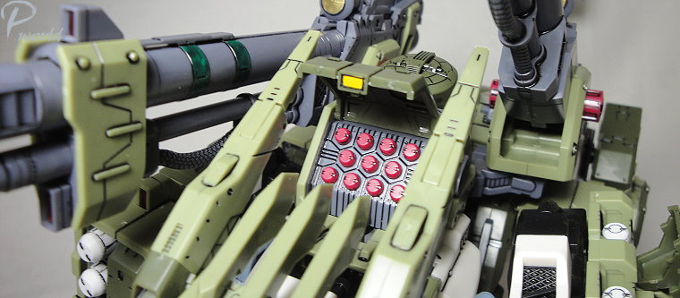因應砲擊戰所開發出的裝甲特色在於全身上下配置了多款火砲設備,就像是一座移動的火藥庫