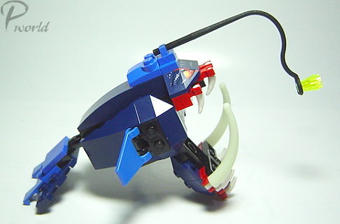 嘴巴上的巨齒為螢光材質黑暗中會發光喔!