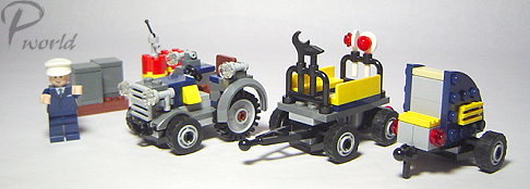 可以用車輛牽引這台維修工程車,不用人力喔!
