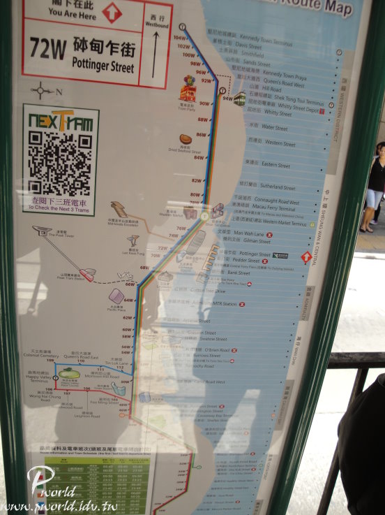 坐叮叮車還滿簡單 叮叮車也是有站牌和地圖的 看好你要下車的站牌號碼,就算是在叮叮車上層也看的到站牌喔 一律從後門上車前門下車 下車給錢,不論遠近單程好像是2元還是3元,八達通卡也可以 要下車前請直接站到前門口司機就會在下一站停下來(好像站站都會停) 很特別也很好玩 利用今天上午的時間來中環附近逛逛 順便去走走中環至半山的戶外手扶梯