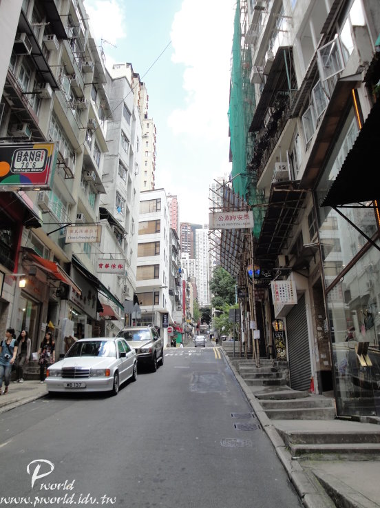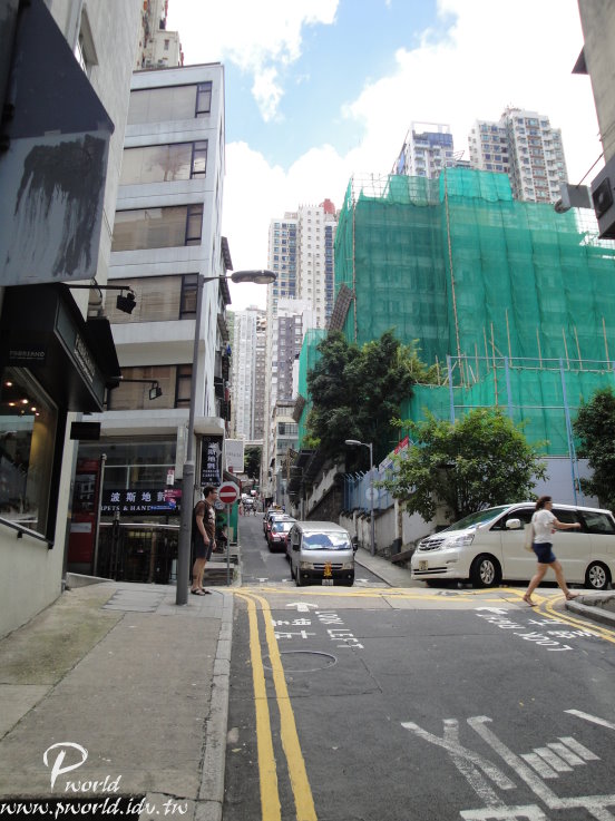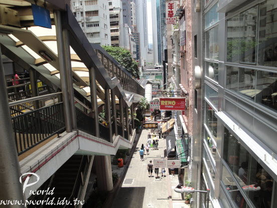 整條手扶梯滿長的 而且附近也有很多地方可以逛可以吃 像是蘭芳園、蓮香樓、蛇王芬、檀島咖啡、九記牛腩等等有名的餐廳都在這附近 還有一些高樓大廈、SOHO蘇豪區、蘭桂坊也都在附近 甚至一些名牌的旗艦店也都在這附近 所以還滿好逛的 手扶梯附近的街道很有另一種氣氛 建築物都沿著坡道興建 剛好成為一間間的小商店 每一間都很有自己的特色