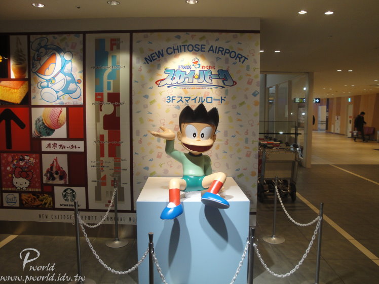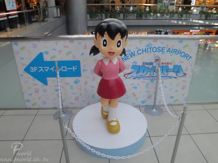 觀光客要離開TOMAMU度假村到新千歲機場 可以選擇搭乘JR或是巴士 我們是選擇巴士這樣比較輕鬆不用為了換車拿著行李上下JR 一樣早上退房後就在大廳等候 等候巴士司機的呼喚 但是 雖然很不想聽到 一聽到就是要回家了 我不要聽、我不要聽 搭乘長途巴士除了可以欣賞高速公路上的風景外 我最期待的就是休息站 難得有機會可以看看外國的休息站 可以跟自己國家的休息站比較看看 看看有什麼可以讓我們學習的 或是有什麼我們比人家驕傲的 下次有機會 試試在日本自己開車 應該也是不錯的 午餐就在新千歲機場享用 新千歲機場國內線航廈裡除了餐廳外也還有很多間商店 這次我們有看到哆啦A夢的人物公仔 不過我們只有看到阿福、宜靜 因為時間關係 也沒有刻意去找 不知道其他人躲在哪裡