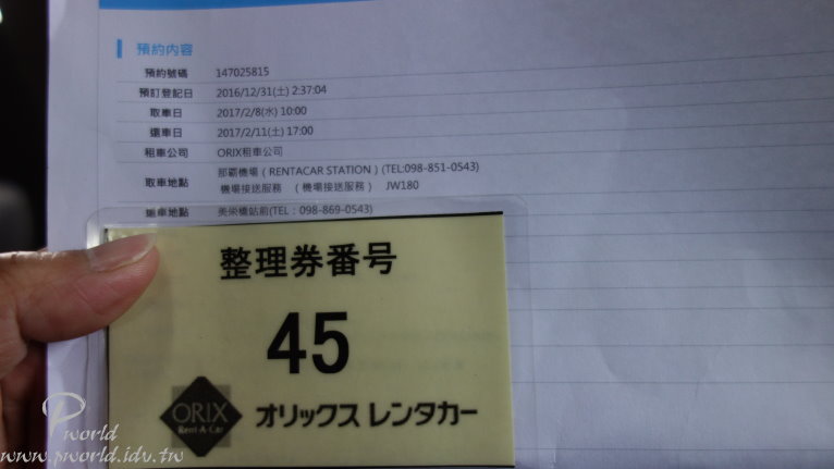 整理卷就是辦理租車時的號碼牌(以號碼牌叫號辦理)