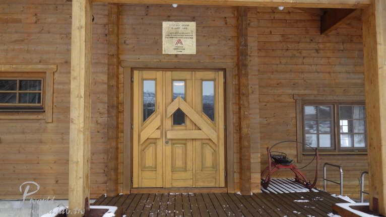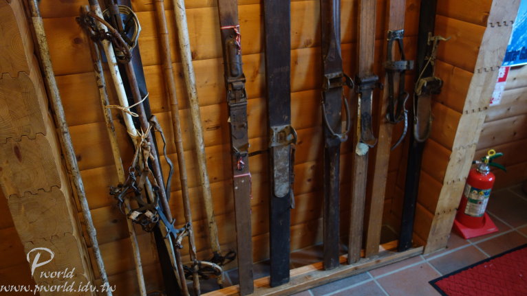 門口旁還擺放著古老的滑雪板