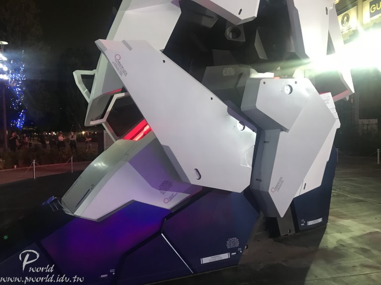 獨角獸鋼彈最有名的變形型態 當然就是這次會動的重點 從膝蓋到腰到肩膀 最後頭部經由機械變化從獨角獸型態覺醒成毀滅模式 配合上燈光、音響 還有牆上投影的動畫片段 在現場觀看 真是一大享受 |