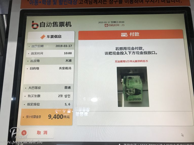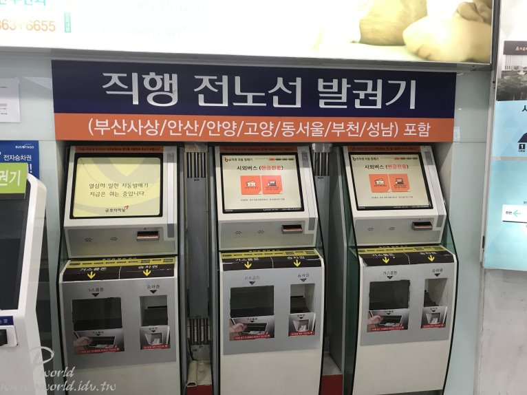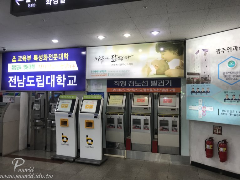 進到木浦綜合巴士客運站後稍微繞一圈就可以找到和務安機場一樣的售票機 你會發現左邊有兩台、右邊有三台(那麼多台) 左邊兩台只接受刷卡 右邊三台只接受現金 原來也是有收現金的機台啊