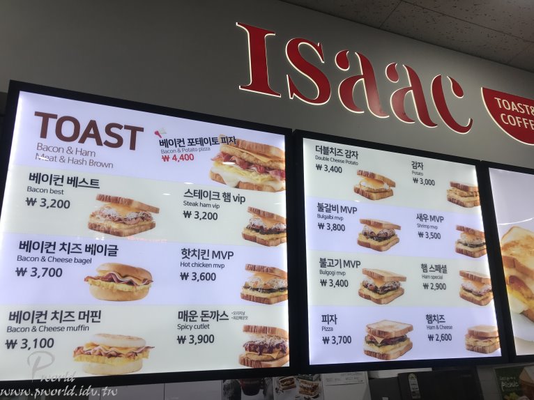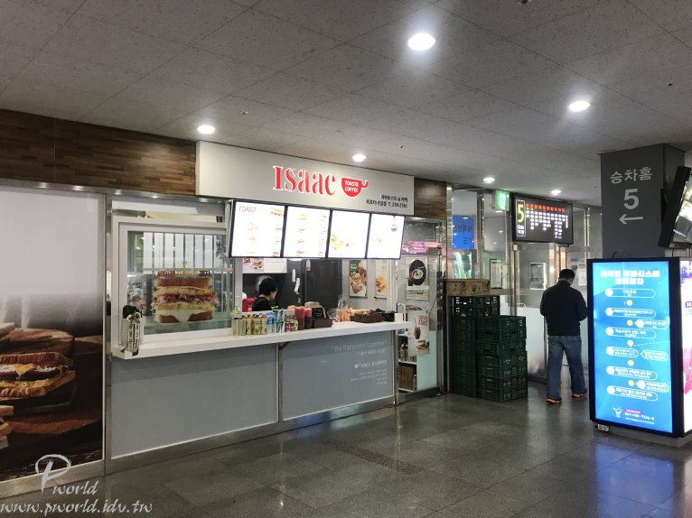 在客運巴士站內有發現一間早餐店 ISaaC 招牌上的餐點看起來都很不錯 但是不知道怎麼點 只好請韓國大媽走出來直接指招牌給她看(麻煩了)