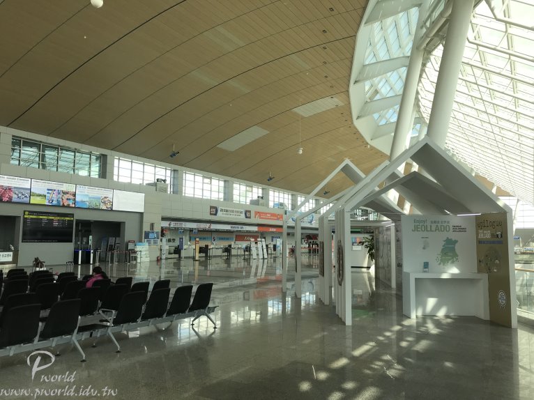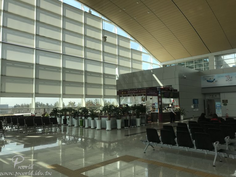 出境大廳內有一間餐廳 機場早上好像沒什麼人來到這裡 目前整個下午也只有一班JEJUair的班機要飛 其它班次都是晚上的班機