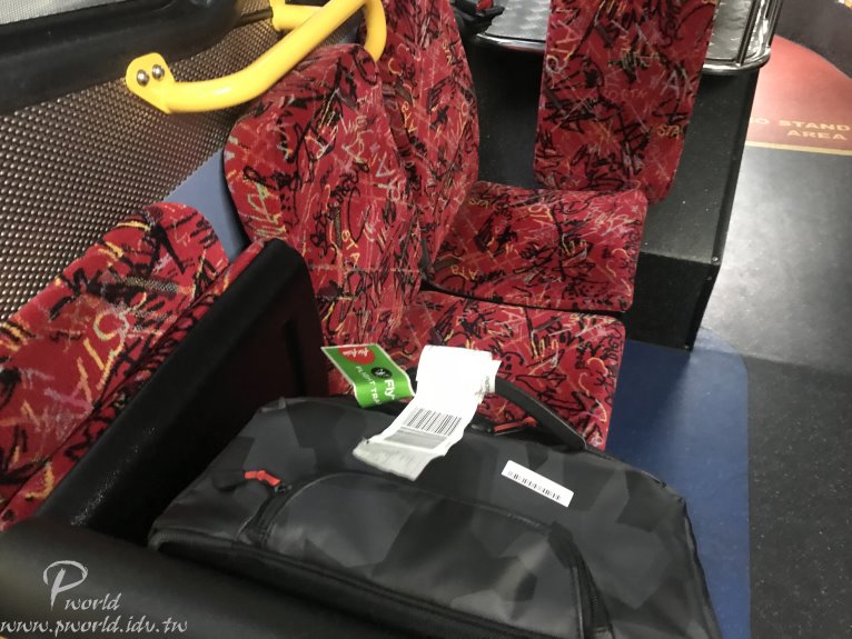 巴士的博愛座很特別 可以把座椅翻起來 像是行李箱、嬰兒車等都可以塞在這裡 滿方便的